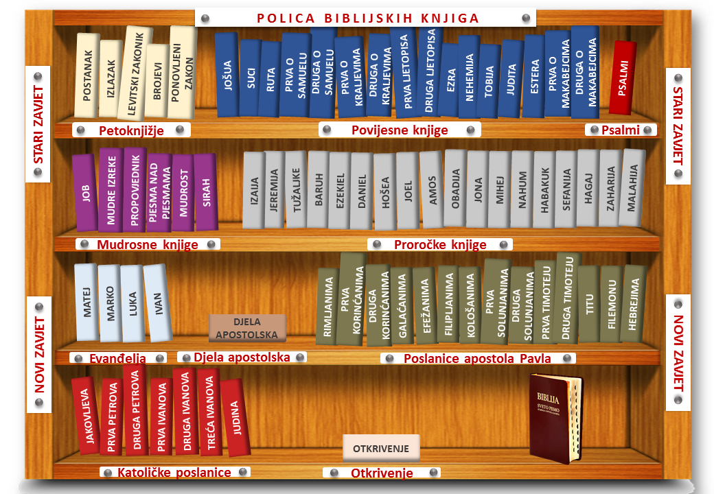 Više se, u tom smislu, o Svetom pismu može saznati ovdje, ovdje i ovdje, a na ovom mjestu donosimo policu biblijskih knjiga, kao trajan podsjetnik koji uvijek može biti nadohvat ruke. Može se u PDF formatu preuzeti ovdje ili klikom na gornju ilustraciju.