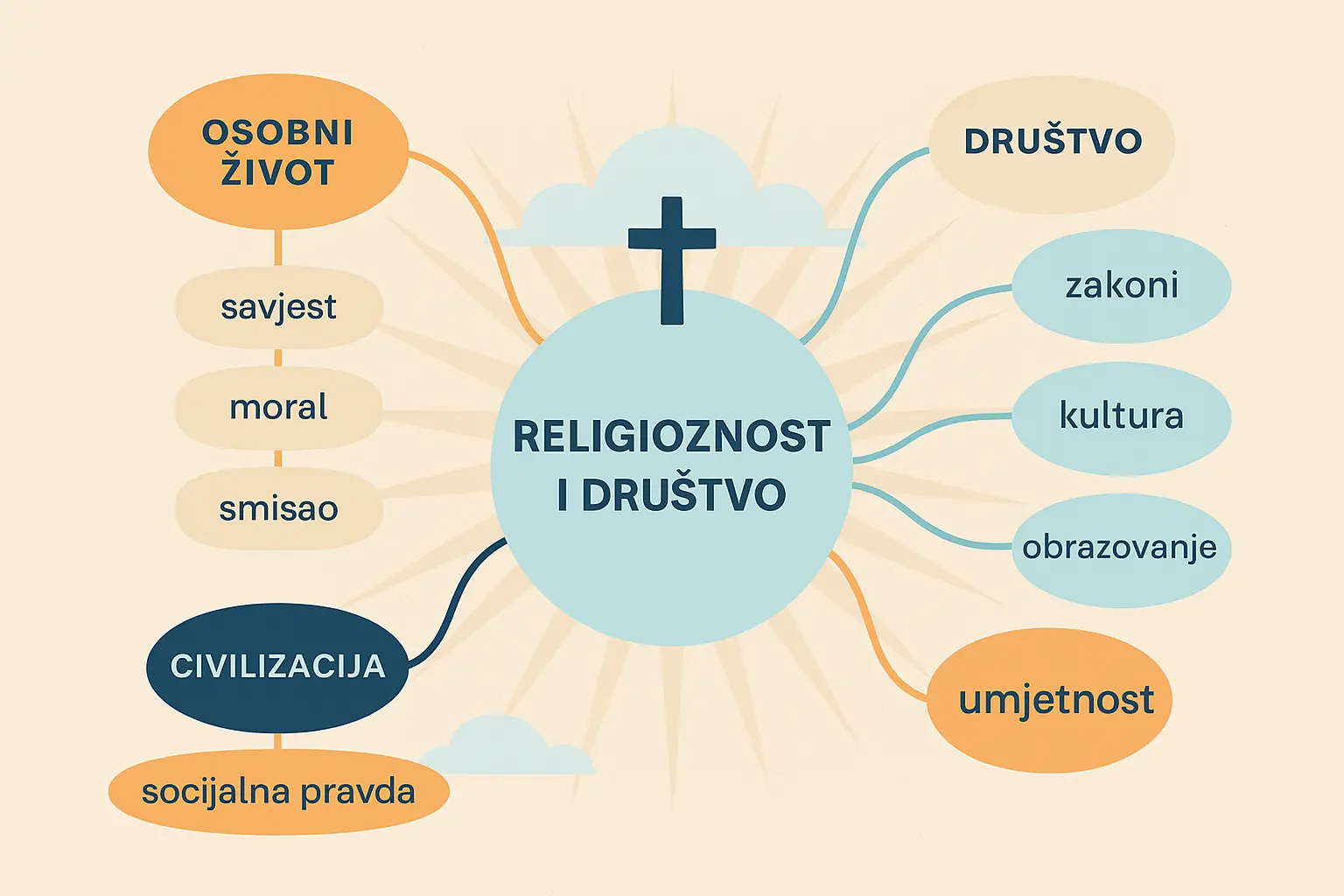 Religioznost je duboki ljudski odgovor na Boga i na pitanje o smislu života. Ona čovjeka vodi prema spoznaji vlastitog dostojanstva i poziva ga na ljubav prema bližnjemu. Religioznost oblikuje savjest, utječe na moralne odluke i način na koji se odnosimo prema drugima, povezujući nas s Kristovom porukom i učenjem Crkve. Kroz povijest katolička vjera bila je temelj društvenih normi, zakona, kulture, umjetnosti i obrazovanja, oblikujući civilizaciju u skladu s Božjim planom za čovjeka. Ona nije samo osobna dimenzija, nego i društvena pojava koja oblikuje identitet naroda i civilizacija.