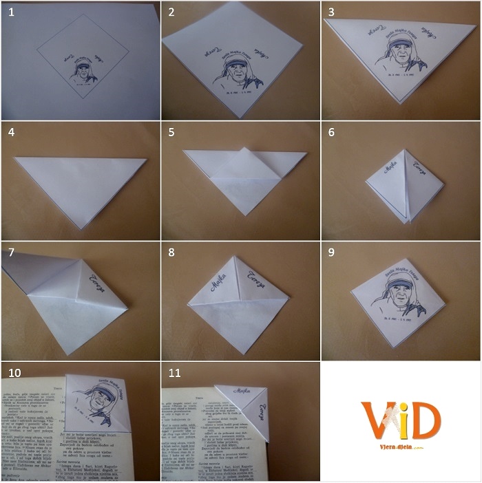 Za izradu straničnika potrebno je isprintati shemu iz priloženog PDF-a, te ju izrezati i presaviti prema donjim slikovnim uputama.
