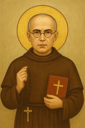 Sveti Maksimilijan Kolbe bio je hrabar svećenik iz Poljske, rođen 1894. godine. Bio je veliki prijatelj Marije, majke Božje, i uvijek je pomagao ljudima koji su bili u nevolji. Osnovao je zajednicu redovnika koji su pomagali drugima i širili ljubav prema Bogu.