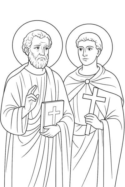 Oboji crtež svetog Poncijana i Hipolita i ispod njega napiši molitvu zahvale Isusu za njihov primjer da i mi budemo vjerni Bogu i Crkvi.