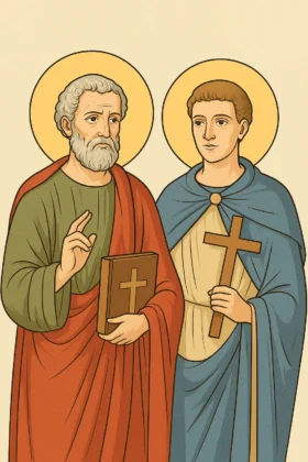 Sveti Poncijan i Hipolit živjeli su davno, u prvim stoljećima Crkve. Sveti Poncijan bio je papa, to znači da je bio nasljednik svetog Petra i vodio je cijelu Crkvu. Sveti Hipolit bio je svećenik i učitelj, ali u početku nije bio uvijek u miru s papom. Ipak, na kraju su se pomirili i zajedno svjedočili vjeru u Isusa.