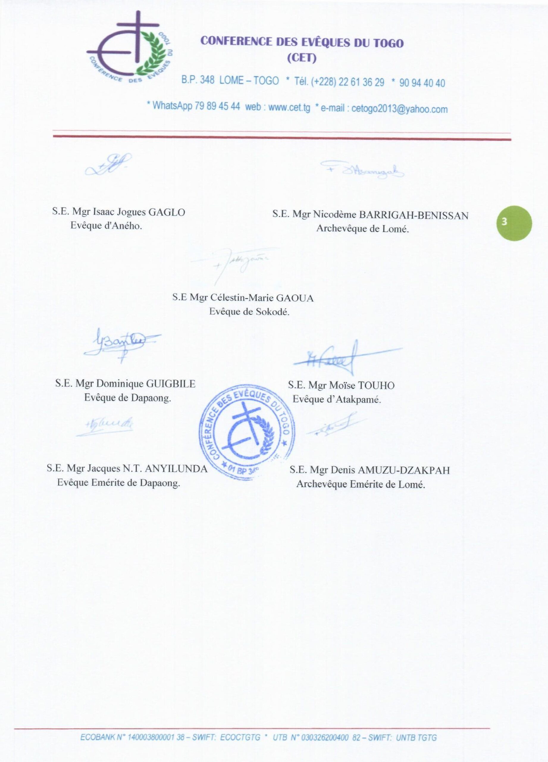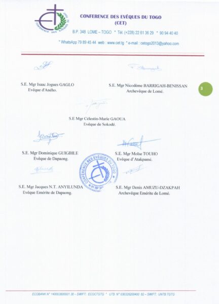 Les Evêques du Togo suivent de près les interrogations, les inquiétudes et les remous provoqués par la publication du Dicastère pour la Doctrine de la Foi, de la « Déclaration Fiducia supplicans sur la signification pastorale des bénédictions », et font la mise au point ainsi que les rappels suivants :
