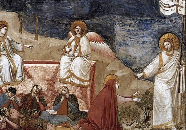 U osvit dana, po suboti, dođoše Marija Magdalena i druga Marija na Isusov grob. Tužno je za njih bilo to jutro. Umro je njihov ljubljeni Učitelj. Onaj koji je prošao svijetom čineći dobro. Onaj koji je naučavao pravi, istinski Božji nauk. Onaj koji je donio novinu, jer je naučavao kao onaj koji ima vlast, a ne kao obični pismoznanci. On je onaj koji je imao sućuti za grešne, obespravljene, za strance i tuđince, za ucviljene i zdvojne, za svakog čovjeka koji je pokazao imalo želje da Boga nađe. Ako je itko bio prorok, – on je bio. Ako je itko bio pravi Božji čovjek on je bio. Štoviše – slutilo im je srce – on je bio pravi Božji Sin. I sada je mrtav. Za njih je to bila još jedna Božja tajna. Tajna da Bog dopušta da pravednik strada, a da se oholica uzdiže. Znale su one da Isusovo djelo, njegov nauk i njegove riječi ostaju iza njega. Međutim, bile su tužne što ga više nema među njima, i što ga više nikada neće susresti.