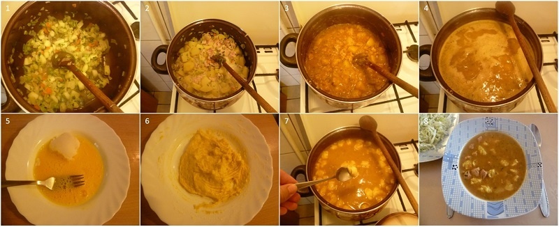 U tanjuru napraviti gustu smjesu od 1 jajeta, 1/2-1 žlice masti, malo soli i 1-2 žlice brašna, te ju čajnom žlicom pomalo otkidati i žličnjake ubacivati u sadržaj koji se kuha. Još sve ostaviti da se kuha oko 20 minuta, a po potrebi dodatno začiniti.